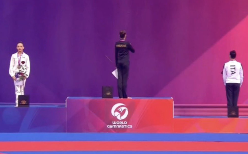 3月31日凌晨,2026赛季国际体联艺术体操世界杯索菲亚站,在圈操项目中,乌克兰选手奥诺弗里丘克(Taisiia Onofriichuk)获得冠军,而俄罗斯选手获得第二名。赛后的颁奖仪式上出现了较大的争议。